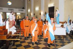1) Los servidores bomberiles llegan con su bandera frente al altar, en la imagen superior