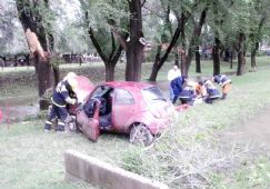 El rodado sufrió cuantiosos daños, mientras los Bomberos asistieron en el lugar al muchacho quien, si bien se encontraba consciente, se quejaba de un fuerte dolor en la espalda.