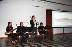 En penumbras. Con sólo una pequeña luz, suficiente para leer las partituras, y una gran pantalla con imágenes de una Villa María de épocas pasadas, se armó el escenario para que el público pudiera disfrutar de la ejecución de piezas musicales de antiguas bandas de música de esta ciudad. El trabajo para producir esa magia estuvo a cargo de un grupo de capacitados artistas integrado por Cecilia Arece en saxo tenor, Mauro Sánchez en saxo alto, Mauricio Alonso en saxo barítono y el propio Sergio Alonso con saxo soprano.