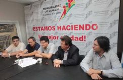 El Ejecutivo municipal, encabezado por el intendente Pablo Rujinsky; acompañado por José Dabbene, presidente del Concejo Deliberante; el secretario de Oras Públicas, arquitecto Jorge Baldi; el secretario de Hacienda, Luis Sánchez, y el asesor económico Javier Dupraz , brindaron una conferencia ante los trabajadores de los medios de comunicación sobre temas referentes a los planes de viviendas municipales.
