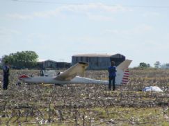 Quienes tripulaban la aeronave eran el instructor Alberto Cabrera y el piloto Matías Albello, quienes, por razones que no trascendieron, perdieron el control del planeador y se vinieron a pique impactando en un predio de la zona rural (foto).