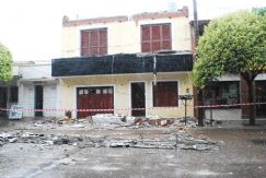 La lluvia terminó de aplacar el polvo que había quedado en el aire tras la caída del balcón.