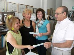 La presidente del Rotary, Susana Bordas, y el tesorero, Ricardo Mazzina, acompañados por el socio honorario Héctor Cavagliato que tramitaron la participación especial de la empresa criadora de maíz KWS y la Aceitera General Deheza en la utilización de las semillas, hicieron entrega de los aportes con destino específico a obras de infraestructura, equipamiento, funcionamiento y mantenimiento de sus respectivas áreas.