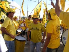 Las banderas amarillas y el inconfundible sonido de los bombos ganó la calle de la entrada de la Planta Córdoba de SanCor.