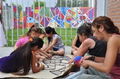En este marco, se presentó el relieve-mural colaborativo en el cual han participado niños, vecinos y educadores. El mismo se trata de una obra en un espacio público -el muro del centro vecinal ubicado sobre calle Haití- que representa figuras en acciones lúdicas. Los materiales son hierros, alambres y pinturas. Las imágenes surgieron de dibujos hechos por los niños en el taller, en la copa de leche y en la escuela primaria del barrio, y luego ensamblados por los educadores y por los propios chicos. Un vecino se ocupó de hacer la construcción de la estructura a partir de los dibujos producidos en el taller.