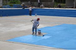 La empresa Ivecor SA, adjudicataria de la primera etapa de la obra de la pileta comunitaria, se encuentra trabajando a buen ritmo para cumplir con su promesa de tener finalizado para antes de fin de año el natatorio. En este sentido, la colocación de solado en los pisos y vereda térmica también se encuentran en un 95% de su ejecución.