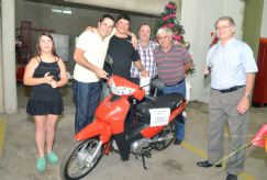 Luego del brindis convocado por Borsatto y durante el baile que duró hasta muy entrada la madrugada de ayer, tuvo lugar el sorteo de una motocicleta marca Maverick 110, que con el número 75 extraído por la pequeña Rocío Borsatto, transformó al joven bombero Mario Abellonio en el feliz poseedor de esta moto donada por Francisco “Chueco” Galera, también colaborador del cuerpo.