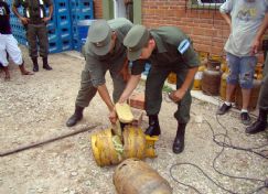 Al comenzar la inspección, los gendarmes notaron que los envases de gas presentaban signos de adulteración, como cortes en los laterales, pintura fresca y un peso excesivo, por lo que decidieron abrirlos.
