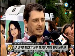Debido a un severo cuadro de una enfermedad denominada linfangiomiomatosis, Olga está en lista de espera en el Instituto Nacional Centro Unico de Ablación e Implante (Incucai) para un trasplante bipulmonar cadavérico. En la vigilia, organizada por los actores y compañeros de Nani en el Instituto Universitario Nacional del Arte (IUNA), se hicieron presentes familiares de donantes, colegas y diferentes medios de comunicación nacionales.
