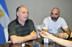 Sobre el final del recibimiento, que también contó con la presencia de Marcos Bovo (del Ente Deporte y Turismo) y Fernando Badrán (director de Deportes) Beccaría le entregó una gorra original del Rally Dakar.