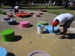 La obra de equipamiento urbano y colocación de nuevos juegos en el sector de la plaza Pedro Viñas, presenta un importante avance.