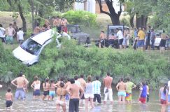 Bastante trabajo tuvieron que desplegar los ocasionales veraneantes, primero, y los Bomberos de Villa Nueva, después, para recuperar un utilitario que, durante la tarde de ayer, casi se cae a las aguas del río Ctalamochita (foto) cuando estaba estacionado en la ribera de la vecina ciudad.