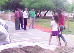 | Una de las fotografías tomadas por el autor de la carta, en la que aparecen Wester y otros funcionarios, entre ellos el intendente y el presidente del Concejo Deliberante |