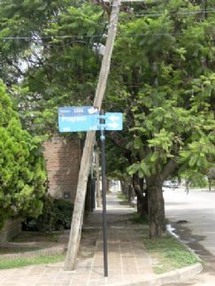 “¿EPEC? ¿Telecom? ¿Cablevisión? ¿Municipalidad? a quien corresponda trasladamos la preocupación que entraña este poste que se sostiene por los propios cables”, manifestaron los frentistas.