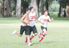 | A correr. Herrera, junto a Ronco y Villagra, busca ponerse a pleno física y futbolísticamente para ayudar a Alumni en la lucha por la clasificación |