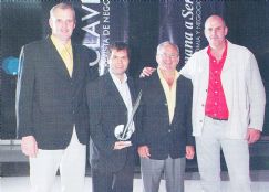 | En la imagen Gabriel Giraudo (de campera blanca), acompañado por sus hermanos Pablo y Lucas y su tío Norberto, durante la entrega del premio en 2007. |