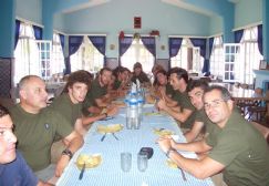 | La delegación villamariense durante el almuerzo de ayer en tierras norteñas, a la espera del primer partido del fin de semana |
