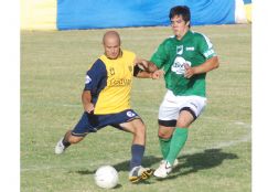 | A marcar. Berterame presiona mientras Velasco tiene la pelota. En Arroyo Cabral se vivió un partido electrizante, que tuvo el triunfo del local, un penal atajado y mucho entusiasmo por parte del público |