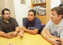 | El secretario General del STIA, Daniel Pesci; el Gremial, Martín Paéz, y el Adjunto, Fernando Rosso, estuvieron ayer en la Redacción de EL DIARIO |