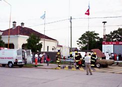 El simulacro de accidente fue seguido por los vecinos que se concentraron frente al cuartel
