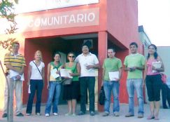 | Miembros de la Oficina de Empleo durante la promoción del programa en el barrio Nicolás Avellaneda |