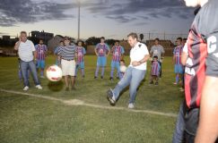 También presenció el acto el titular de Alem de Villa Nueva, Luis Ortega, y mientras los jugadores de ambos equipos formaron un círculo en el sector central de la cancha, Airaldi invitó a dar el puntapié inicial al exrector de la Universidad Nacional de Villa María y actual diputado nacional, Martín Gill (foto).