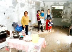| Carla, las niñas, la madre y la suegra, muestran el interior de la casa que ocuparon para poder dormir bajo techo. La joven madre asegura que no dejará la casa si no le ofrecen un techo bajo el cual vivir |