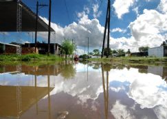 Formosa al 2100, en su intersección con la ruta pesada. Otro barrio, el mismo panorama. Calles convertidas en lagunas. El agua estancada desafiando a los habitantes del lugar a llegar a sus viviendas sin embarrarse tanto.