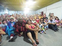 El espectáculo, que se realizó en las instalaciones del salón municipal, contó con rutina de payasos con la interacción del público presente, mago, malabaristas, acrobacia (baile sobre cama elástica) y lanzador de llamas.