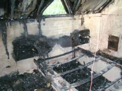 Las maderas y la lana de vidrio de la construcción en sí, los muebles y los vidrios (que estallaron en virtud del calor) quedaron destruidos.
