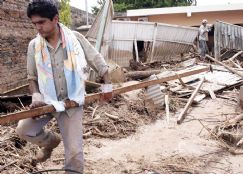 | Los pobladores de Tartagal tratan de rescatar al menos algo de las que fueron sus viviendas |