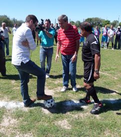 Además, se realizó el acto inaugural del certamen, denominado “30º aniversario de la AFUCO”, con la presencia del diputado nacional Martín Gill, quien realizó el puntapié inicial (foto) junto a Nelso Polliotto y Rubén Medina, integrantes de la primera comisión de la AFUCO.