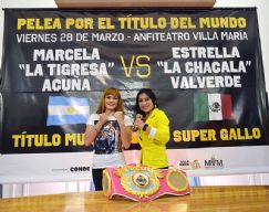 La campeona Marcela Acuña, a su turno, dijo: “La verdad es que poder estar en Villa María es un orgullo, repito algo que ya he dicho, voy a ser prácticamente la estrella principal de un evento que nunca se dio en la ciudad, como es una pelea por un título mundial de boxeo femenino. Otra cosa que nos enorgullece es estar en esta ciudad que es conocida por sus eventos culturales, tantos nacionales, como internacionales. Pensaba que esta organización tiene que estar acorde a lo que nos tiene acostumbrado el Anfiteatro de Villa María. En segundo lugar, será la primera vez que defenderé el título que obtuve el año pasado en octubre, y lo que más deseamos, en especial, hacer una gran pelea y que toda la gente de Villa María pueda acudir y se retire conforme de la pelea que vamos a realizar. Estrella Valverde tiene los méritos para demostrar que es una digna rival para poder disputar este título mundial”.