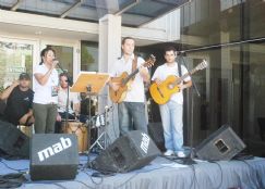 Ayer por la mañana, el móvil instalado de Cadena 3 montó una mini peña en la puerta de entrada de la medioteca. Animada por Carina Bonoris y conducida por Luis Yunes, se desarrolló un singular evento desde las 11 hasta la 1 de la tarde con artistas como Los Arrayanes, Los Soñadores, Julio Vaca “Chicharrón”, Pablo Lozano, Quique Ponce y Los Cuatro de Córdoba. El momento cumbre del encuentro fue la interpretación de “Zamba para Villa María”, con algunos de los artistas nombrados, junto a su creador Adalberto Otero Wilson (quien tuvo su homenaje anoche y volverá a la ciudad en marzo con sus cuadros y poemas) y el propio intendente Accastello.
