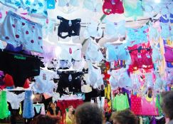La feria montada a la vera de la costanera se asemejaba al paisaje de “La Salada” bonaerense con productos en serie y coincidentes en varios stands