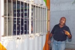 | Bessone, el encargado del negocio indica la ventana por la que ingresaron al interior de la oficina para llevarse la importante cantidad de herramientas |