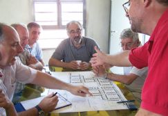 El encuentro, desarrollado en una de las casas de barrio San Martín, duró más de dos horas y giró en torno a distintos aspectos relacionados con la culminación de las obras.