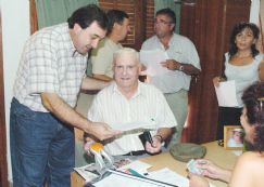 El acto se llevó a cabo en la oficina legislativa de calle Lima (832) de la vecina ciudad de Villa Nueva, al que asistieron los beneficiados, algunos productores de más que no habían sido notificados pero que "por las dudas" se llegaron, y el intendente de Silvio Péllico, Heraldo Romano (acompañó a tres agricultores de esa localidad).