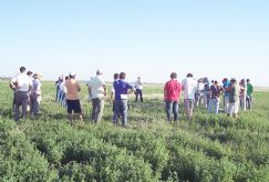 El jueves pasado, en el establecimiento de Eduardo Verea, en la zona rural de Las Mojarras, se desarrolló la Jornada a Campo, donde además de recorrer y establecer diferencias y características en los distintos ensayos de alfalfa, 19 en total, realizados en 18 hectáreas, se evaluaron los beneficios de la alfalfa en la cría de ganado, y las formas y normas para su implantación, manejo y mayor persistencia.
