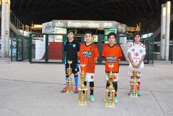 Fotografía: Tomás Perón (Sarmiento 2002); Lucas Pedraza (El Porvenir 2004); Ignacio Gómez (El Porvenir 2005) y Matías Ramos (Roque Sáenz Peña 2003) posaron en la puerta del Anfiteatro Municipal para SEMILLERO en representación de sus respectivos equipos, que resultaron los mejores en la primera parte de la temporada