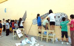 El trabajo, desarrollado sobre la fachada de calle Naciones Unidas, cuenta con cerámicos recolectados y reciclados por los propios estudiantes. "Lo aplican en base a elementos morfológicos básicos -el punto, la línea y el plano- como lo hicimos en los demás murales", cuenta Vázquez. El proyecto, que se completará con pintura aportada por la comuna, continuará hasta el viernes o el lunes, de acuerdo a las condiciones climáticas.