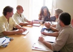 | La ingeniera Guardia preside la reunión de trabajo en la sala de la Intendencia |