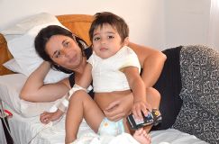 Ya había pasado la medianoche y Bautista Ayala, el niño que el 7 de febrero cumplirá 2 años, estaba dormido en los brazos de su mamá, Jaqueline Mercaú, quien está embarazada de mellizos (un varón y una nena) en el séptimo mes de gestación.