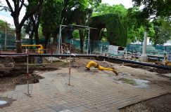 Las labores se efectúan bajo estrictas medidas de seguridad exigidas por el Gobierno local. Una vez concluida la misma, se repondrán los mosaicos originales del sector afectado de la plaza y a los mencionados trabajos se sumarán obras de refuerzo de cañería.