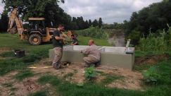Restaba parte de la compuerta de cada una de las esclusas, las que no se hicieron en la ciudad y los empleados municipales procedieron a colocar en los tres sectores mencionados en el paso del río por la localidad.