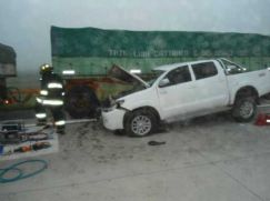 Se trata de Iván Montiel, quien iba al volante de un camión Iveco cargado con piedra molida cuando, sobre el kilómetro 411, una camioneta Toyota Hilux, que circulaba en el mismo sentido y aparentemente intentó rebasarlo, en virtud de la espesa neblina reinante en el sector, que dificultaba la visión, impactó en un costado del rodado de gran porte.
