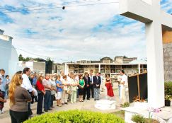 Familiares de víctimas de la violencia urbana recibieron ayer el abrazo de representantes de diversos sectores sociales, durante el acto que organizaron junto a la cruz ubicada en el ingreso al cementerio La Piedad, de esta ciudad.