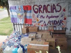 Además de la imagen, enumeró que se recolectaron 120 litros de agua mineral, 48 litros de desodorante para pisos, 111 litros de lavandina, 155 velas cortas, 200 velas largas, 160 pañales, 10 rejillas de cocina, 20 panes de jabón blanco, cuatro jabones de tocador, 21,25 litros de detergente, dos escobillones, una escoba, 12 esponjas, dos bolsas de virulanas, tres encendedores, cuatro cepillos, 11 trapos de piso, un par de guantes, cuatro secadores de goma y cinco litros de leche.