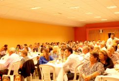La jornada inaugural culminó con una cena show que congregó a la familia bochófila y vecinos de la localidad y región, donde hubo entrega de recordatorios a los jugadores visitantes, reconocimientos de trayectoria y demás. En las alocuciones, tanto del acto como de la cena, Luis Vittori (secretario de la subcomisión) y autoridades remarcaron, con palabras de agradecimiento, a quienes colaboraron (bochófilos, particulares y municipio) para concretar la obra. También anunciaron que desde el municipio local se va a colaborar con la adquisición de los tableros electrónicos, quedando así el estadio a la par de otros (nivel provincial, nacional) en materia de competitividad, desarrollo y crecimiento de la institución.