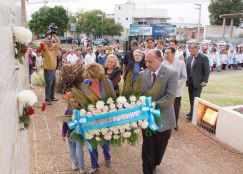 Sobre el cierre del acto, el intendente, acompañado por el secretario de Gobierno Héctor Muñoz, el presidente del Concejo Deliberante, Javier Suppo, el presidente del Centro de Veteranos de Guerra de Malvinas, Eric Langer, familiares de héroes y el ex mandatario radical Horacio Cabezas, colocaron una ofrenda floral al pie del monumento, instante que despertó la emoción de muchos vecinos.